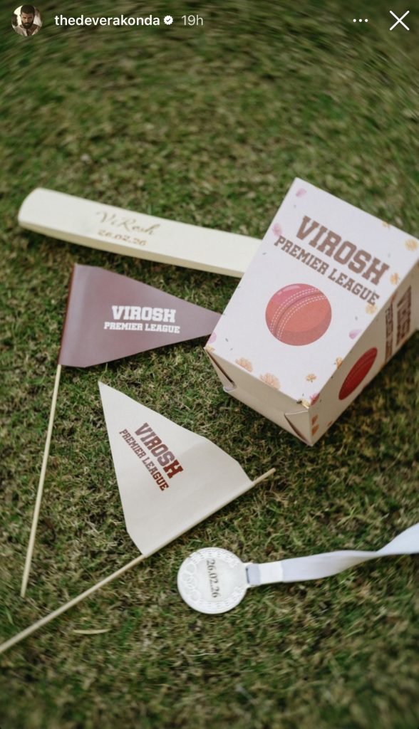 The wedding festivities of Bollywood stars Vijay Deverakonda and Rashmika Mandanna have captivated audiences, with the latest development being the unique incorporation of a cricket match into their celebrations. The events began on February 23, 2026, in Udaipur, Rajasthan, featuring traditional rituals alongside vibrant activities like haldi and mehndi. A standout moment was the cricket match dubbed the 'VIROSH Premier League,' where close friends and family participated, playing with a bat engraved with the couple's names and wedding date, February 26, 2026. This innovative twist added a memorable touch to the festivities, as noted by Hum News, which reported that the event was attended by around 100 guests, mostly family and close friends, with few major film stars invited. Vijay's mother presented Rashmika with traditional bangles, symbolizing love and familial acceptance, further enriching the cultural significance of the occasion.